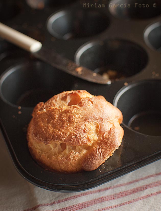 Para un desayuno de lujo, si os gustan los desayunos salados como a mí. Aunque yo no tengo la culpa de este nombre tan raro, popovers. Es que estos panecicos son yanquis y ellos les ponen nombres muy gráficos, porque esto significa algo así como saltones. Es porque suben y se esponjan mucho, y saltan por encima del borde del molde. Se asilvestran, ellos.