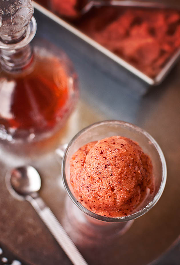 Jo, qué buena pinta y qué color tan intenso. Me está encantando esta serie de helados y sorbetes «al punto de alcohol» (qué preciosas esas piruletas de Martini!)
